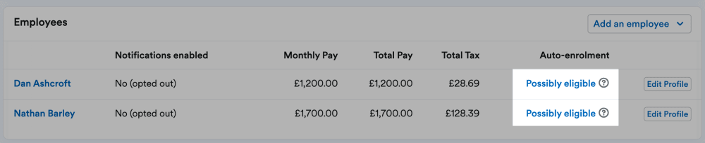 This allows you to confirm whether highlighted employees are eligible for auto-enrolment.